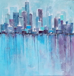 2019"Big blue apple", acrylverfschilderij van 1x1m. De skyline op New York.